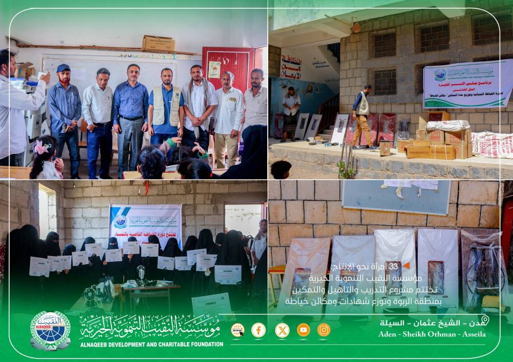 اختتمت مؤسسة النقيب التنموية الخيرية مشروعها للتدريب والتأهيل والتمكين الاقتصادي للمرأة في منطقة الربوة بمديرية الحبيلين بمحافظة لحج، مستهدفة 33 امرأة من أبناء المجتمع المحلي، وذلك بحضور مدير عام المديرية الأستاذ فضل القطيبي وعدد من الشخصيات الاجتماعية والتربوية.