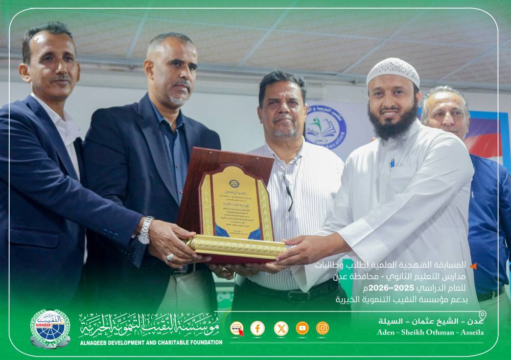 برعاية وزير الدولة محافظ محافظة عدن الأستاذ عبدالرحمن الشيخ وتمويل مؤسسة النقيب التنموية الخيرية .. اختتام المسابقة المنهجية لمدارس الثانويات في عدن.
